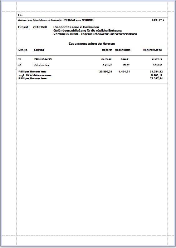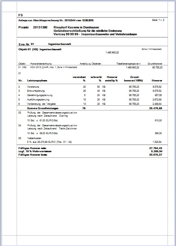 Anlagen Honorar