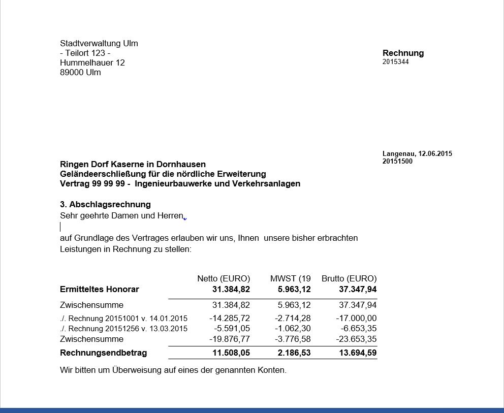 Beispiel Anlagen zu einer Rechnung